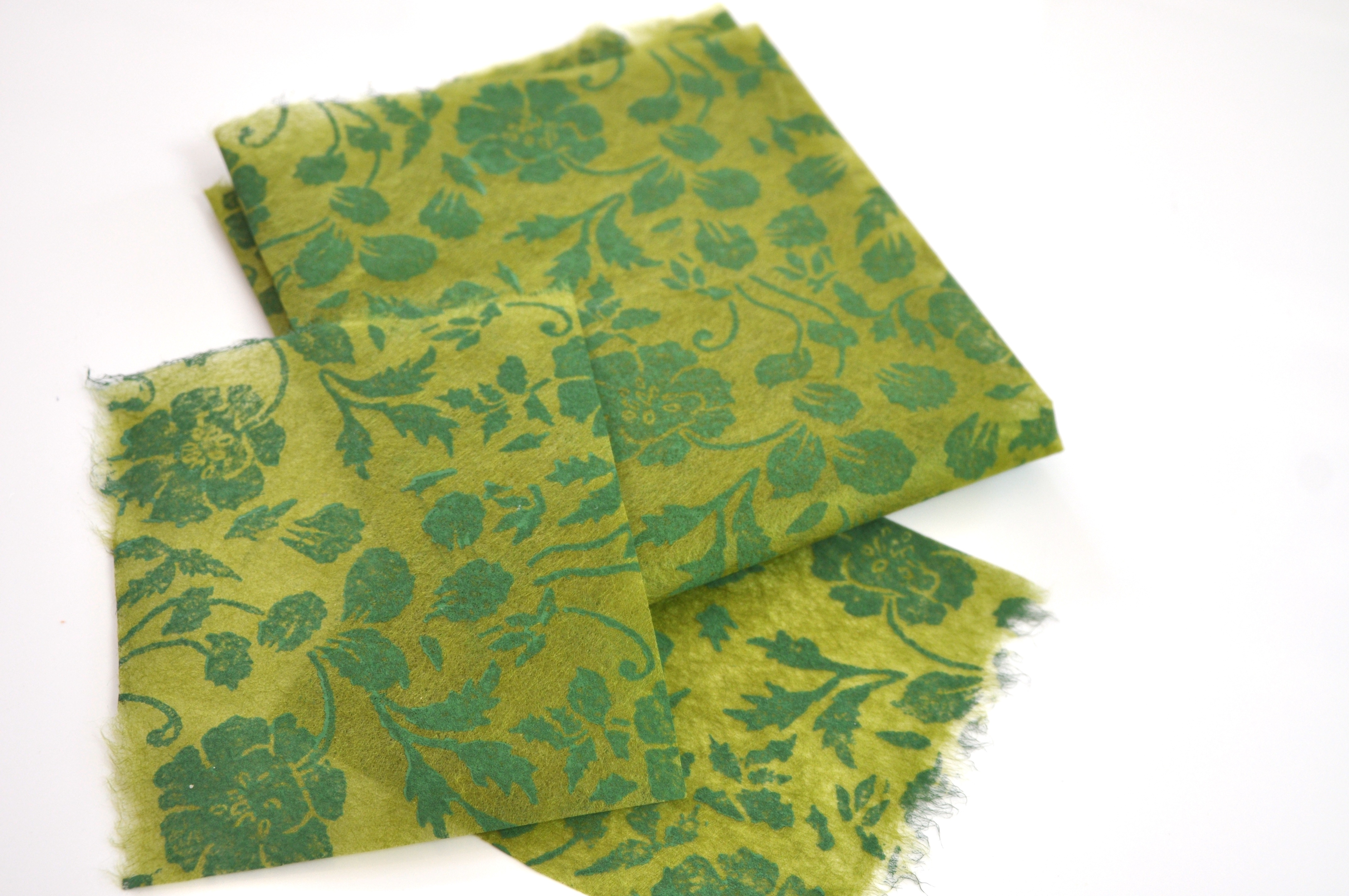 This silk paper is quite thick but transparent, with a delicate embossed pattern. We have two colours in this paper green and white for you to choose from, the size of each sheet is 83cm x 55cm. We love it that much you may have noticed we wrap our soaps in this beautiful paper!